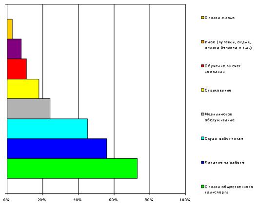 Справедливости ради, надо отметить, что % российских компаний на рис.3 и рис.4, применяющих те или иные льготы и поощрения работников, были определены в ходе опроса компаний, заявивших о применении “компенсационного пакета”. Выборка вряд ли может считаться репрезентативной, ее характер, скорее, качественный. Большинство же предприятий России применяют систему мотивации, аналогичную отраженной на рис.2[12].