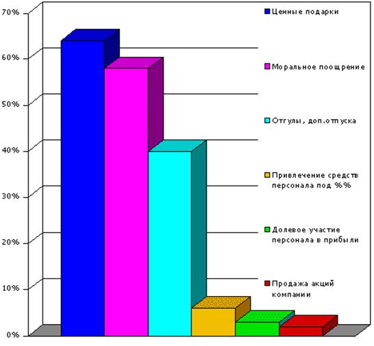 Мотиваторами служат не только различные премии, памятные подарки и т. д. Характер вознаграждения труда зависит от его количества и качества, а также от удовлетворения пожеланий и надежд самих сотрудников. Один из наиболее действенных мотивов творческого труда – продвижение по службе. Большое значение имеет и возможность приобрести акции предприятия, что создает для сотрудника впечатление совладельца.