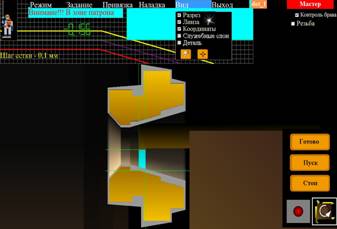 Это связано с тем, что при обработке на универсальных станках не видно самого процесса обработки, другими словами, обработка ведется «вслепую». Благодаря системе «ПроЭмулятор» весь процесс обработки можно визуализировать. Это осуществляется при помощи функции «разрез» (Рис. 5). Обработка внутренних поверхностей ни чем не отличается от обработки наружных.