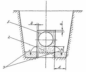 В этом случае боковые траншеи заглубляют ниже нижней образующей трубы (рис. 2), а грунт, извлеченный из под трубы, укладывают на дно боковых траншей.