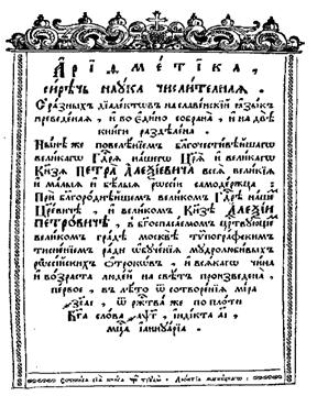 В январе 1703 году был опубликован учебник Магницкого с длинным названием: «Арифметика, сиречь наука числительная, с разных диалектов на славянский язык переведенная и во едино собрана и на две книги разделена…Сочинися сия книга через труды Леонтия Магницкого», как о том сказано на титульном листе книги. Учебник Магницкого вышел огромным тиражом (по меркам того времени) – 2400 экземпляров. Что же представляет собой «Арифметика» Магницкого? Об этой книге написано очень много. Исследователи характеризуют содержание по-разному, но всегда – положительно. Автор книги «История математики в России до 1917 года» Юшкевич считает, что «около 50 лет она не имела конкурентов и сыграла в истории русского математического образования чрезвычайную роль».