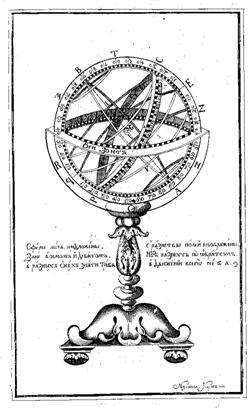На двух вклейках представлены гравюры на меди: сфера мира (Приложение 5), под изображением награвировано шестистишие, и «роза ветров» (Приложение 6) – обе прекрасно выполненные.