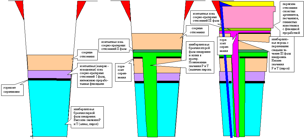 ГЕОЛОГИЧЕСКАЯ СХЕМА СЛАБОЭРОДИРОВАННОЙ МНОГОФАЗНОЙ ДИАТРЕМЫ (первый объект)