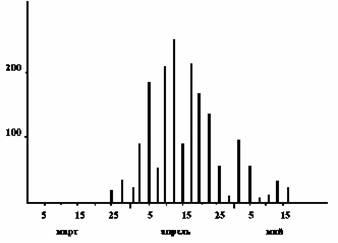 рис. суточные суммы журавлей в пролетных стаях в период миграции