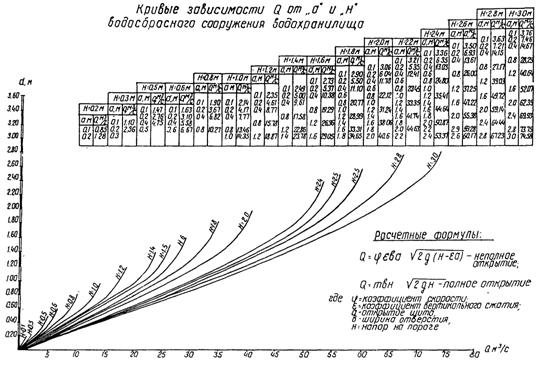 КРИВЫЕ зависимости Q ОТ "а" И "Н" ВОДОСБРОСНОГО