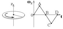 9. Диск вращается вокруг своей оси, изменяя проекцию своей угловой скорости так, как показано на рисунке. На каких участках графика зависимости