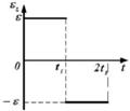 11. Диск радиуса R начинает вращаться из состояния покоя в горизонтальной плоскости вокруг оси Z, проходящей перпендикулярно его плоскости через его центр. Зависимость проекции углового ускорения от времени показана на графике. Во сколько раз отличаются величины тангенциальных ускорений точки на краю диска в моменты времени t1 = 2 с и t2 = 7 с?