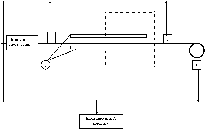 1-датчики скорости прокатки на выходе и температуры конца прокатки;