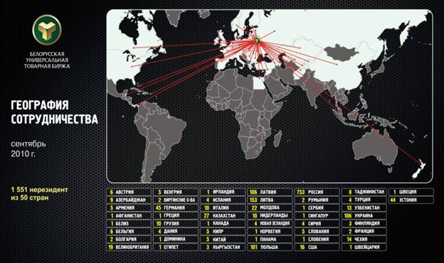 3) Формирование конкурентной среды для покупателей и продавцов. В биржевых торгах принимают участие более 7200 нерезидентов Республики Беларусь из 47 стран.