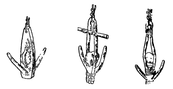 Рис. 163. Самодельные якоря из дерева и камня