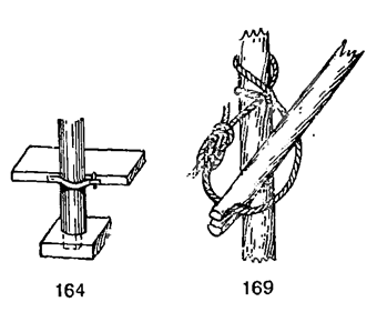 | Рис. 164. Крепление шпора мачты в степсе и при помощи наметки к банке Рис. 169. Строп для нижнего конца шпринтова |