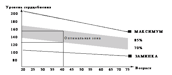 Рис.4. График зависимости частоты ударов сердца Наращивание мускулатуры. Для наращивания мышечной массы в ходе тренировки необходимо увеличить нагрузку, что будет способствовать общему увеличению мышечной массы и сокращению времени тренировки. В любом случае необходимо составить индивидуальный дневник тренировки. Если в ходе тренировки, ваш пульс выходит за рамки оптимальной зоны, снижайте темп тренировки. Снижение веса. Главный фактор снижения веса – ваше желание добиться результата. Чем больше и интенсивней вы тренируетесь, тем больше калорий вы сжигаете. | ||||||||||||