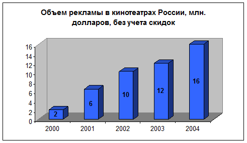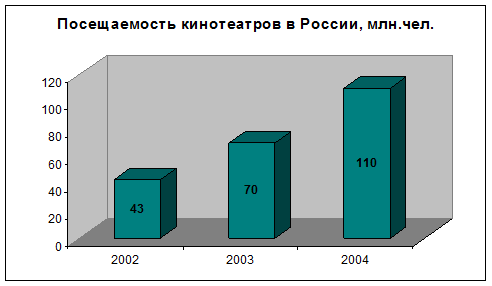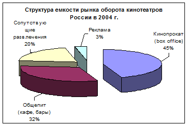 Совокупная реальная емкость рынка оборота кинотеатров по итогам 2004 года оценочно составила 600 млн. долларов. Прирост по сравнению с 2003 годом составил 67%. Таким образом, прошедший год продолжил тенденцию динамично развивающегося рынка.