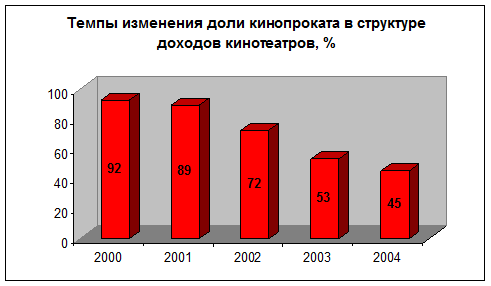 Из таблицы видно, что в структуре происходит постепенное перераспределение акцентов с позиций кассы кинопроката в сторону общепита и развлечений, что говорит о том, что современные кинотеатры становятся, прежде всего, местом культурного досуга населения.