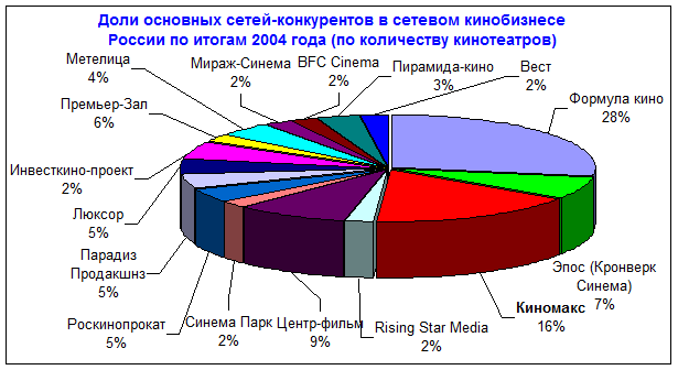 Следует отметить, что конкуренция по кинопрокату осуществляется не только между сетями и отдельными кинотеатрами, но и с телевидением, DVD и Интернетом.