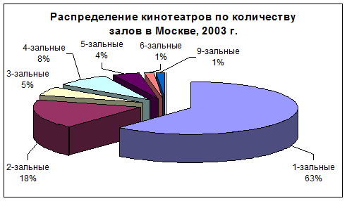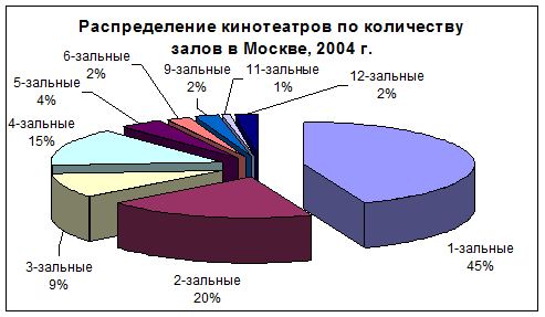 На сегодняшний момент в Москве фукнционируют 88 современных и 10 традиционных кинотеатров, хотя потенциальная емкость Москвы оценивается экспертами на уровне 150-170 кинотеатров, включая 60 многозальных. Доля многозальных кинотеатров в структуре рынка Москвы значительно увеличивается: