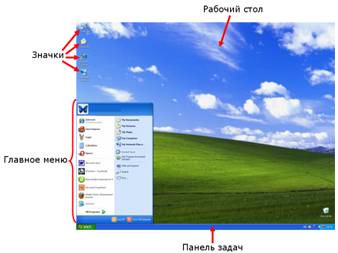 Основные элементы графического интерфейса Windows XP: рабочий стол, значки, ярлыки, панель задач, окна.