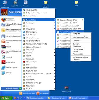 2. Наведя курсор на Microsoft Office Word 2003, нажимаете правую кнопку мыши и вызываете контекстное меню.