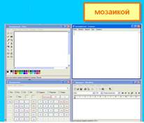 Расположение окон на экране относительно друг друга можно менять. Активным считается окно с выделенным заголовком или нажатой кнопкой на панели задач. Чтобы изменить расположение всех открытых окон: