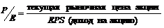 Для инвестиционного анализа часто используется коэффициент P/E - отношение цены к доходу на акцию. Цель его расчёта - получить возможность для сравнения стоимости сопоставимых ценных бумаг и установить ориентиры или рамки для конкретных отраслей. При этом предполагается, что компания в течение ряда лет будет иметь постоянный уровень прибыли. Таким образом, P/E - это количество лет при неизменной величине EPS , которое потребуется компании, чтобы окупить цену своих акций.