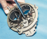 | 29. Отворачиваем второй воздушный жиклер холостого хода и симметрично расположенный воздушный жиклер переходной системы вторичной камеры.