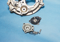 | 37. Пассатижами с узкими губками вынимаем из корпуса малые диффузоры первичной и вторичной камер вместе с удерживающими их пружинами.