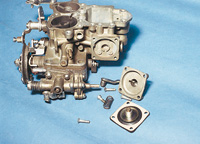 1. Снятый с автомобиля карбюратор перед разборкой тщательно моем снаружи, используя кисть и любую растворяющую маслянистые отложения жидкость: бензин, керосин, дизтопливо, хотя для большей пожарной безопасности лучше предпочесть две последние. Наилучший эффект дает применение специальных химических препаратов.