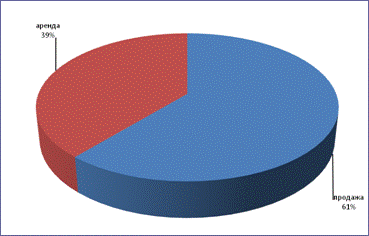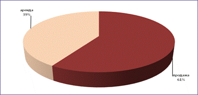 В структуре предложений объектов коммерческой недвижимости Владимирской области, включая областной центр, в декабре 2012 года преобладала продажа – около 60% в общем объеме предложений.