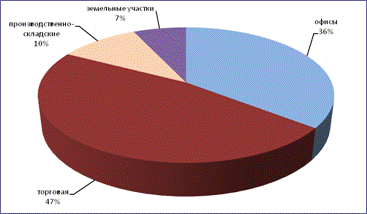 Рис. 1. Структура рынка коммерческой недвижимости Владимирской области в декабре 2012 года.[3]