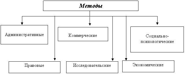 Методы управления это способы воздействия управляющей подсистемы субъекта управления на управляемую систему (работника, коллектив, организационно-экономический объект управления) для достижения поставленной цели. В зависимости от способов воздействия на управляемую систему выделяют административно-распорядительные, экономические, социально-психологические и правовые методы управления.