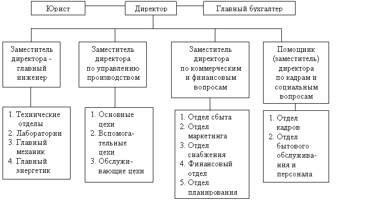 Крупные предприятия, специализирующиеся на производстве сложных и трудоемких видов продукции, состоят, как правило, из десятков цехов, лабораторий, отделов. Для координации их деятельности создается сложная иерархическая структура (рисунок 10).
