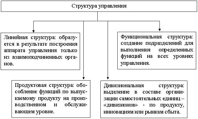 Известны следующие организационные структуры управления предприятиями: линейная, линейно-штабная, функциональная, матричная (по продукту) и смешанная (рисунок 11).