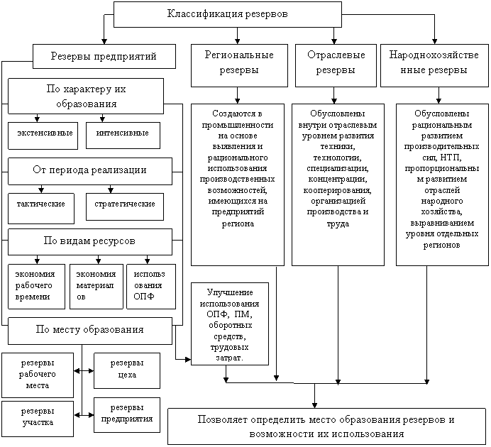 Классификация резервов позволяет определить место образования резервов и возможности их использования.