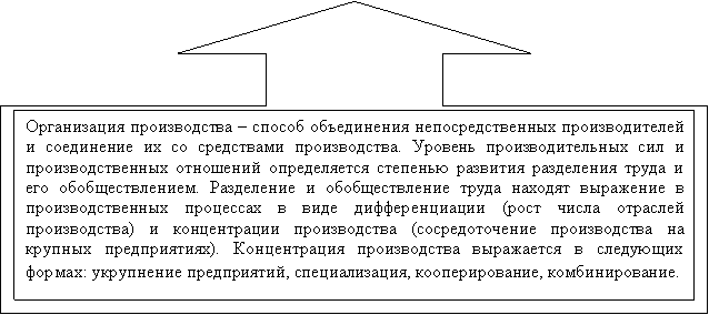 Комбинирование производства сочетание взаимосвязных разнородных производств одной или нескольких отраслей в рамках одного предприятия. | Кооперирование производства производственные связи предприятий по производст-ву конечной продукции, которая возникает непосре-дственно из специализации отраслей | Специализация производства концентрация производства конструктивно и технологичес-ки однородной продукции, ко-торая позволяет более эффек-тивно использовать ресурсы производства |