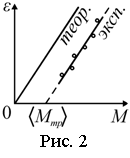 и соответствующего углового ускорения тела могут быть представлены линейной зависимостью (рис. 1, эксп.), то можно сделать вывод о справедливости основного закона динамики вращательного движения.