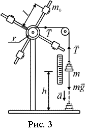 Экспериментально основной закон динамики вращательного движения проверяется на установке (рис. 3), которая представляет собой крестовину, свободно вращающуюся в горизонтальной или вертикальной плоскости, на которой располагаются подвижные грузы
