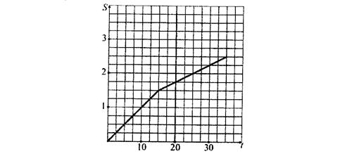 в) Турист во время прогулки сначала шёл по ровной просёлочной дороге, а потом дорога пошла в гору. На рисунке изображён график его движения. На вертикальной оси откладывается длина пройденного им пути в километрах, а по горизонтальной – время движения в минутах. Определите, с какой скоростью турист шёл по ровной дороге. (Ответ дайте в км/ч.)