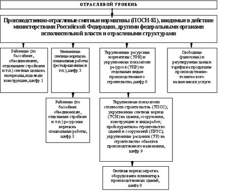 К производственно-отраслевым сметным нормативам (ПОСН-81) относятся сметные нормативы, вводимые в действие министерствами и другими органами федерального управления для производственного строительства, осуществляемого в пределах соответствующей отрасли и, как правило, в отдельных районах (угольных бассейнах, объединениях, отдельных стройках и т. п.), для которых они разработаны (Рис.3.2.). Нормативы, подлежащие применению организациями нескольких министерств и органов государственного управления, утверждаются по согласованию с Госстроем России. Указанные нормативы не должны противоречить государственным федеральным сметным нормативам или дублировать их.
