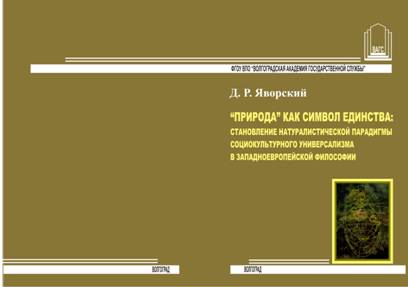 Я 22 «Природа» как символ единства: становление натуралистической парадигмы социокультурного универсализма в западноевропейской философии: монография / ; ФГОУ ВПО «Волгоградская академия государственной службы». – Волгоград: Изд-во ФГОУ ВПО ВАГС, 2007. – 164 с.