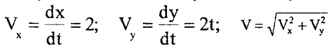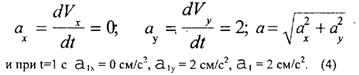 и при t=1с: V1x,=2cм/c, Viy= 2 см/с, V1y =2,83 см/с. (З)