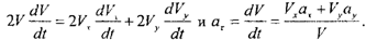 Касательное ускорение найдем, дифференцируя по времени равенство V²=V²x+V2y. Получим