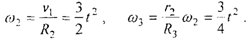 Определяем сначала угловые скорости всех колес как функции времени t. Зная закон движения рейки 1, находим ее скорость :