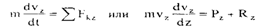 Далее находим Рz = Р = mg, Rz = - R =mv2 ; подчеркиваем, что в уравнении все переменные силы надо обязательно выразить через величины, от которых, они зависят. Учтя еще, что Vz = V, получим