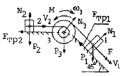 Работа остальных внешних сил - сил Р2, Рз, N1, N2 ,N3 равна нулю, так как силы Р2, N1, N2 перпендикулярны направлению перемещения, а силы Р3 и N3 приложены в неподвижной точке.