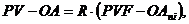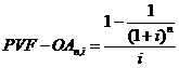 PVF – OA n, i – приведенная стоимость аннуитета постнумерандо п периодов при процентной ставке i, которая рассчитывается по формуле