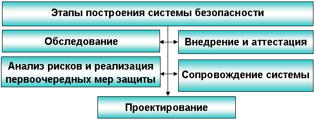 Основные этапы построения систем безопасности корпоративных систем представлены на рис. 3.7.