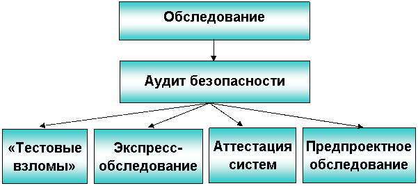 Предпроектное обследование предполагает анализ организационной структуры предприятия в приложении к информационным ресурсам, правила доступа сотрудников к тем или иным приложениям. Затем выполняется анализ самих приложений. После этого должны учитываться конкретные службы доступа с одного уровня на другой, а также службы, требуемые для информационного обмена. Затем картина дополняется встроенными механизмами безопасности, что в сочетании с оценками потерь в случае нарушения информационной безопасности дает основания для ранжирования рисков, существующих в информационной системе, и выработки адекватных контрмер. Успешное проведение предпроектного обследования и анализа рисков определяет, насколько принятые меры будут, с одной стороны, экономически оправданы, с другой - соответствовать угрозам.