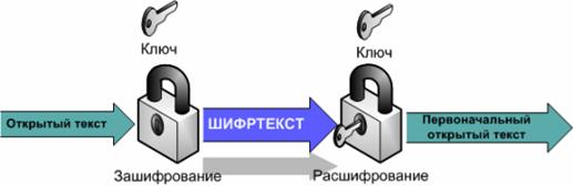 Рис. 5.8. Зашифрование и расшифрование с помощью ключа.
