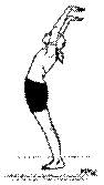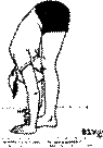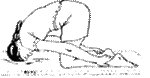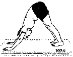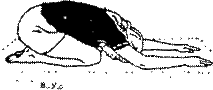 Медленно выдыхая, наклоняйтесь вперёд. Руки, туловище и голова должны оставаться на одной линии. В конце выдоха лоб и руки должны лежать на полу перед коленями (см. рисунок). Тем, для кого это оказывается невозможным, следует наклоняться настолько, насколько это удобно. Расслабьте все тело, стараясь, чтобы руки были полностью расслабленными. Дышите медленно и глубоко.