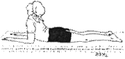 Положите на пол одеяло. Лягте на живот (положение ничком). Сложите руки за спиной, взяв запястье одной руки пальцами другой.